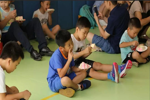 大家齊唱生日歌,共同許愿,光谷校區(qū)文校長(zhǎng)為大家切蛋糕