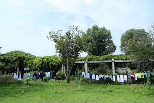 早操后,大家偶然間發(fā)現(xiàn)了一棵千年老樹。對著大樹,大家合起雙手,許下虔誠的愿望。陽光沿著綠葉的縫隙,灑下點點光斑,映著孩子們的臉龐,美好得恰如他們純真的心。