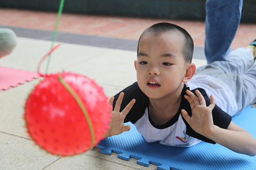 下午的活動是擊球比賽,目標(biāo)100個,鍛煉孩子的耐力和頸背部肌肉張力,手眼協(xié)調(diào)能力和意志力。