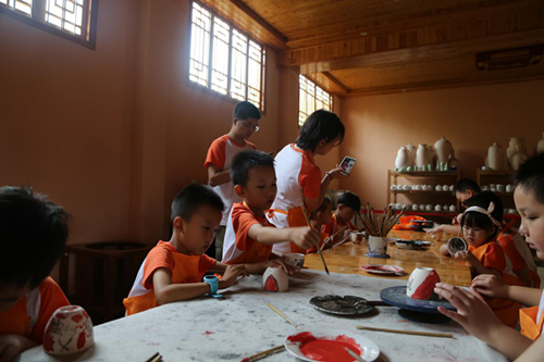 包完餃子,接下來就是孩子們都一致期待的陶藝課啦!每人在自己的小杯子上畫上自己喜歡的圖案,統(tǒng)一高溫?zé)浦?,再郵寄給每個小朋友。 讓孩子們觸摸泥土,做陶藝,感受創(chuàng)作器物的美好,放松于淳樸的田園生活,進而培養(yǎng)審美,提高專注力和創(chuàng)造力。