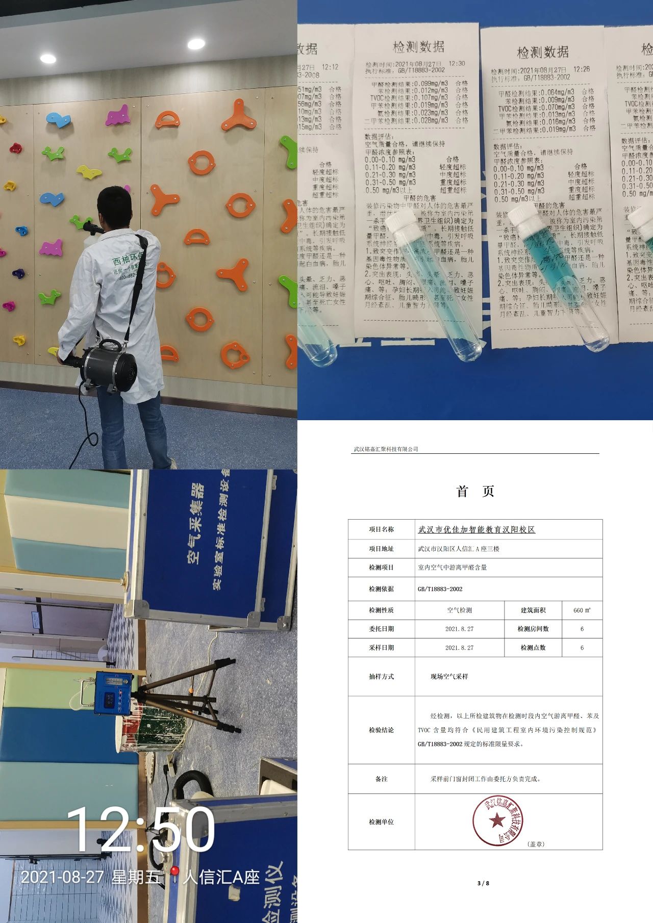 8月24日,校區(qū)整體的除甲醛工作,然后整體空置通風(fēng)。為了保障老師和學(xué)員家長的健康安全,在環(huán)境達標(biāo)后,8月27日再次進行了深層次除甲醛工作。