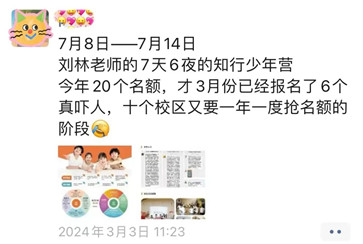 這一打聽才知道,原來是去年參加過成長營的家長,一看到今年成長營消息出來,半數(shù)的家庭選擇提前報名,今年決定再去成長一次!