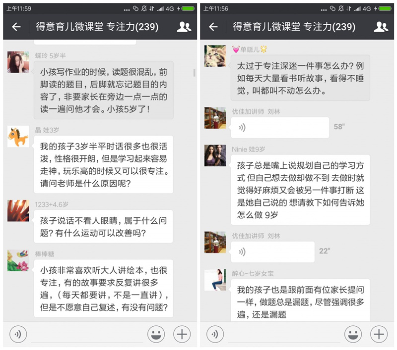 2018年1月11日下午3時(shí),一場關(guān)于“如何培養(yǎng)孩子的專注力”大型公開線上微課堂,在得意育兒微課堂開講。寶爸寶媽們積極參與,當(dāng)天下午為近三百名的孩子家長做了一場關(guān)于孩子注意力的專題講座,并獲得了圓滿成功。