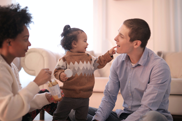 學(xué)話:教孩子跟隨你說話,在完整地說一句話后,你說前半句,讓孩子說后半句。
