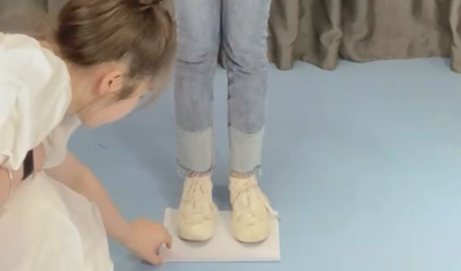 準(zhǔn)備一個(gè)沙包,放在腳背上,紙杯里裝滿水端在手里,用腳跟行走,注意水杯里的水別撒了。一開始可以只用一個(gè)沙包,單手端水杯,熟練后可以逐漸增加難度,在兩個(gè)腳背上都放上沙包,雙手各拿一個(gè)水杯。
